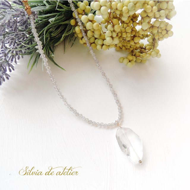 【1点もの】クリスタルタンブル グレーオニキス&真鍮ビーズショートネックレス