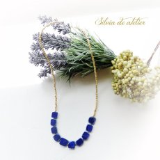 【1点もの】ラピスラズリ フラットタンブル ゴールドビーズネックレス