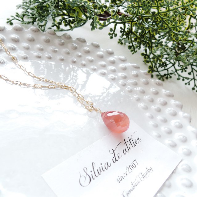 <残り1・AAAA>大粒 インカローズ ブリオレットドロップ 約50cm14kgfデザインチェーンネックレス