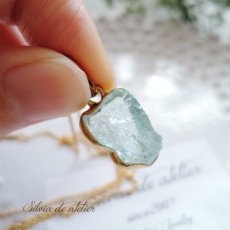 <1点もの・C>大粒 アクアマリン 原石フレームストーン 14kgfネックレス約50cm