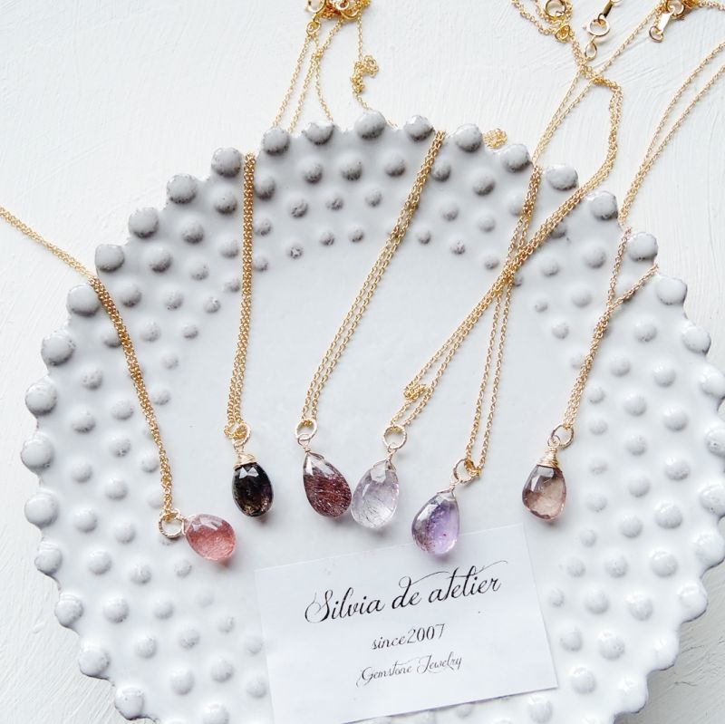 【1点もの・Bスモーキーパープル】AAA エレスチャルクォーツ ペアシェイプ 14kgfネックレス約40cm