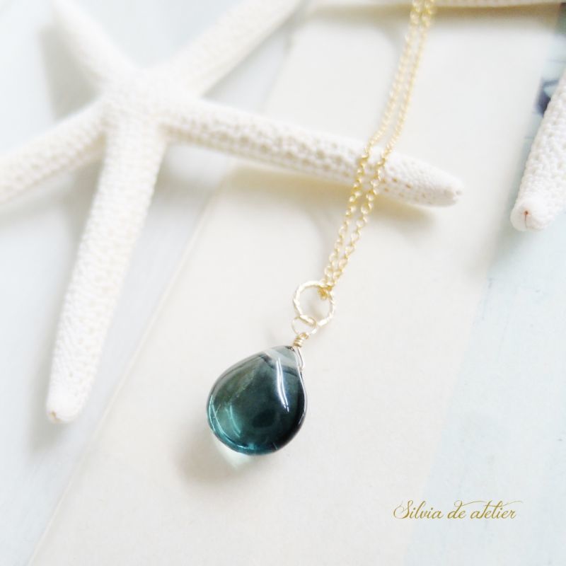 【限定数のみ】AAA ブルーグリーン フローライト プレーンペアシェイプ サージカルステンレスネックレス約40cm