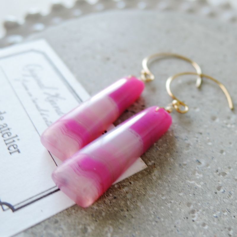 【1点もの・イヤリング変更可】ピンク ボツワナアゲート サンカク 14kgfピアス