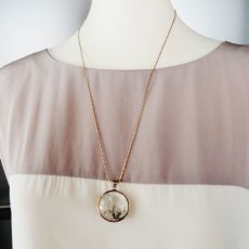 【1点もの・ラウンド大粒】ブラジル産 デンドリティッククォーツ ペンダント vintageチェーンネックレス約60cm