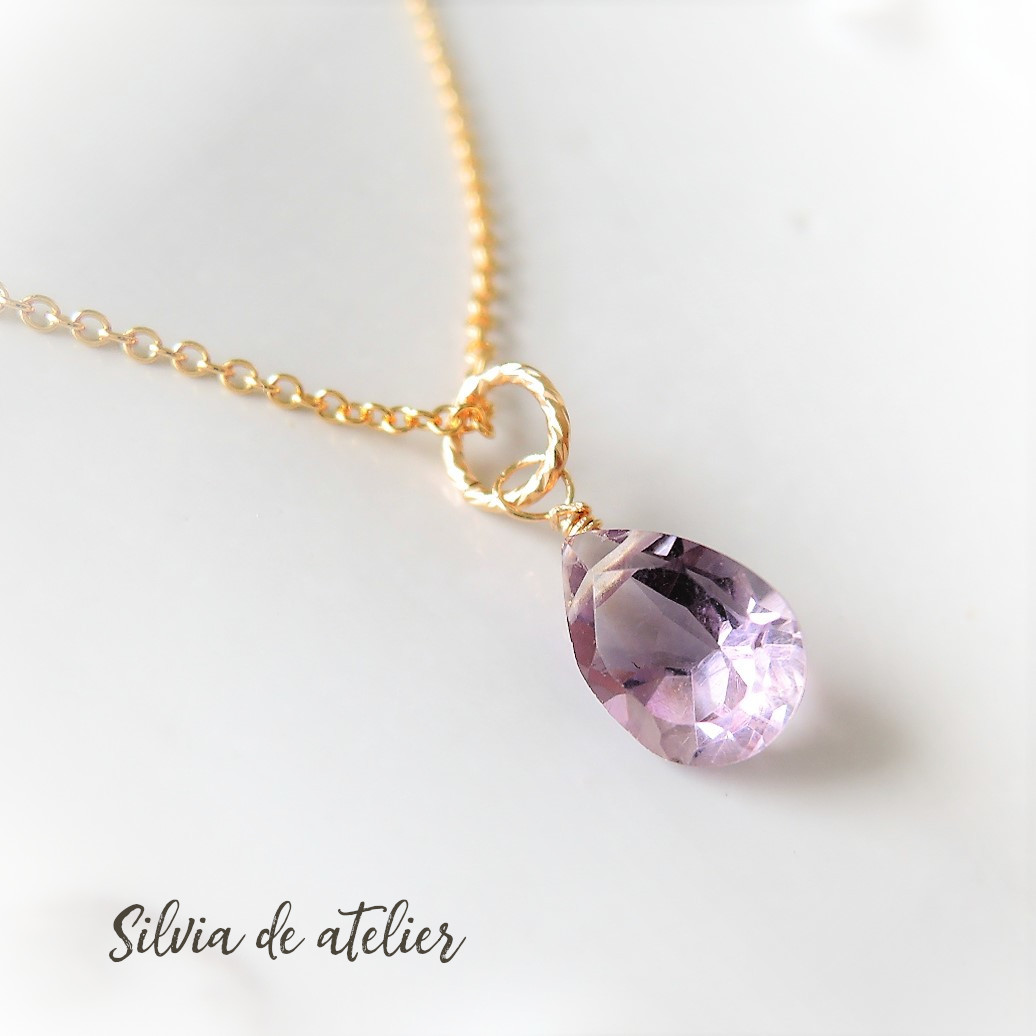 【限定数のみ】宝飾用ルース ピンクアメジスト ペアシェイプジェム 約40cmサージカルステンレスネックレス [N2013]