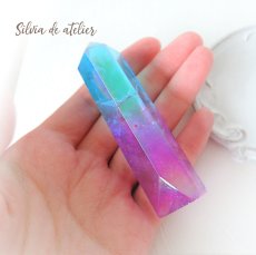 【残り1・ピンクブルー】 チャクラカラー対応 オーラクォーツ結晶 音叉セット