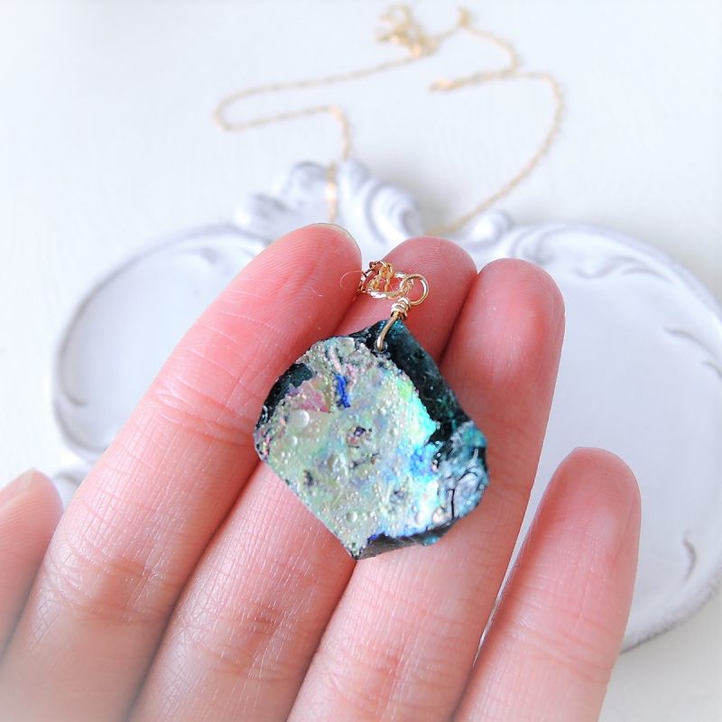 そこにピンクやゴールドなどの遊色が浮かびます。