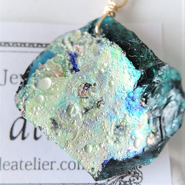 【1点もの・ブルーC】希少! 古代ローマングラス カケラ 14kgf約50cmチェーンネックレス