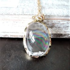 【1点もの・オーバルC】幸運を呼ぶ虹色 アイリスクォーツ カボション フレーム 14kgf約50cmチェーンネックレス [N2077]