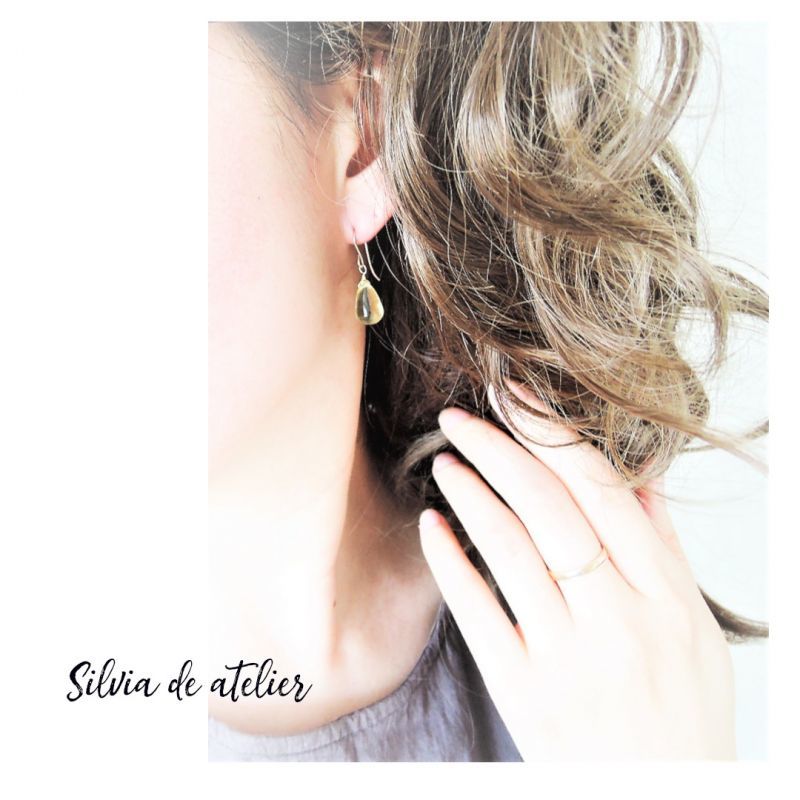 【限定数のみ・イヤリング変更可】爽やか レモンクォーツ 大粒ドロップ 14kgfフックピアス