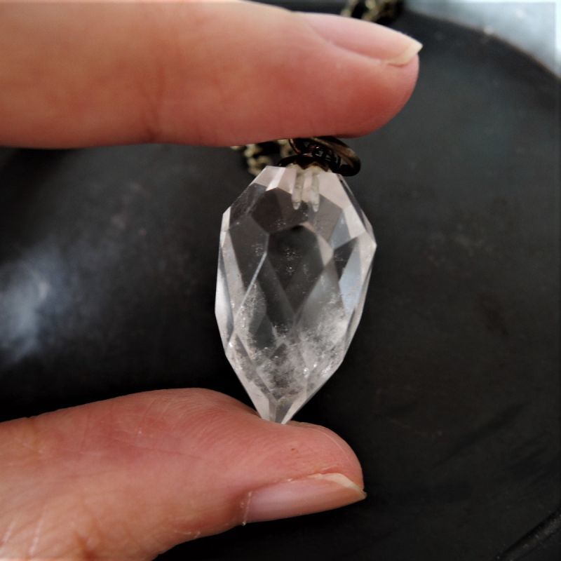 【1点もの・アンティークゴールド】希少石!大粒 ヒマラヤンクリスタル ペンデュラム 真鍮デザインネックレス50cm