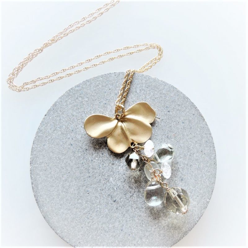 【1点もの・アニバーサリー】天然石ミックス ゴールドメッキチェーンロングネックレス70cm [N2145]