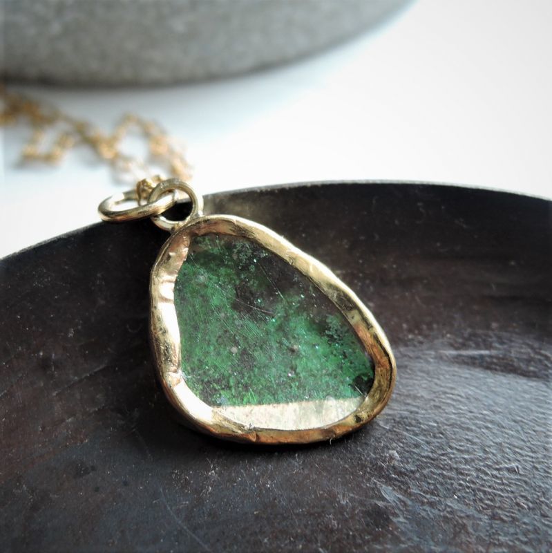 【1点もの・B】希少! 古代ローマングラス フレームペンダント 14kgf約50cmチェーンネックレス