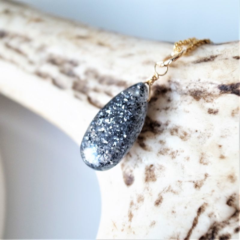 半額SALE【在庫僅少・訳あり・M】ブラックサンストーン スムースペアシェイプ サージカルステンレス40cmネックレス