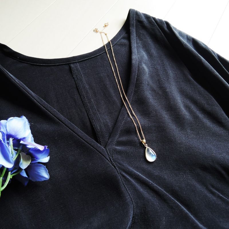 【1点もの・ティアB】AAA ロイヤルブルームーンストーン(ペリステライト) カボションフレーム 14KGFネックレス40cm