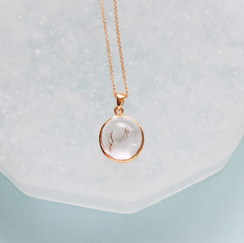 【1点もの・A】希少石!水入り水晶(クリスタル) ペンダントネックレス 14KGFネックレス50cm