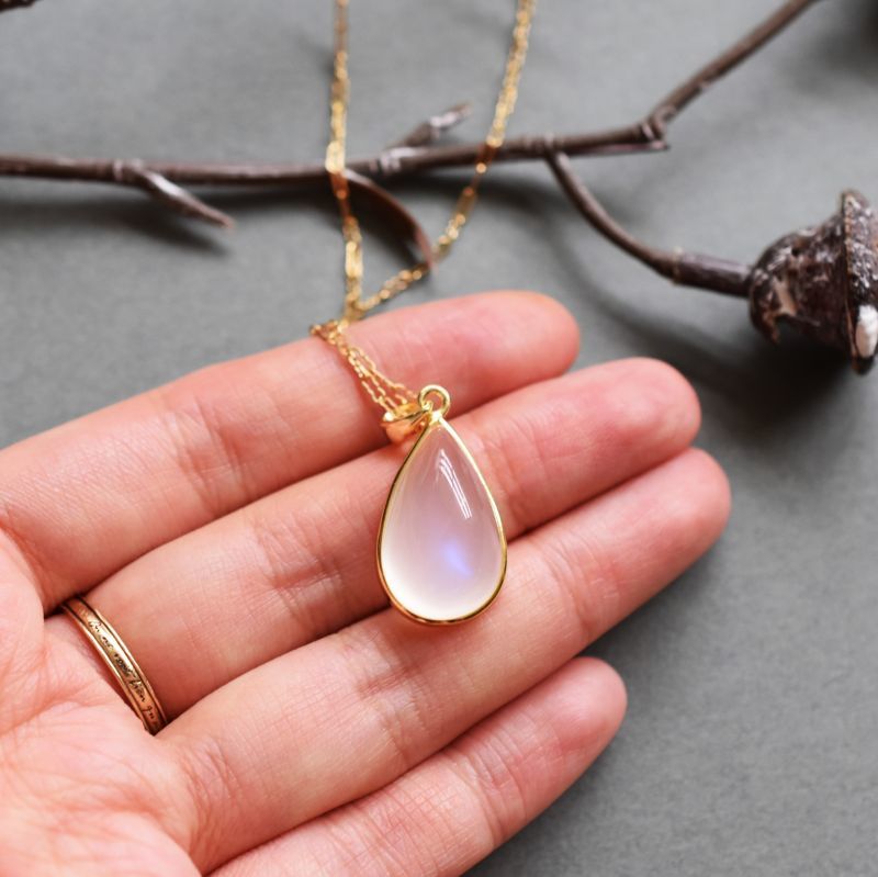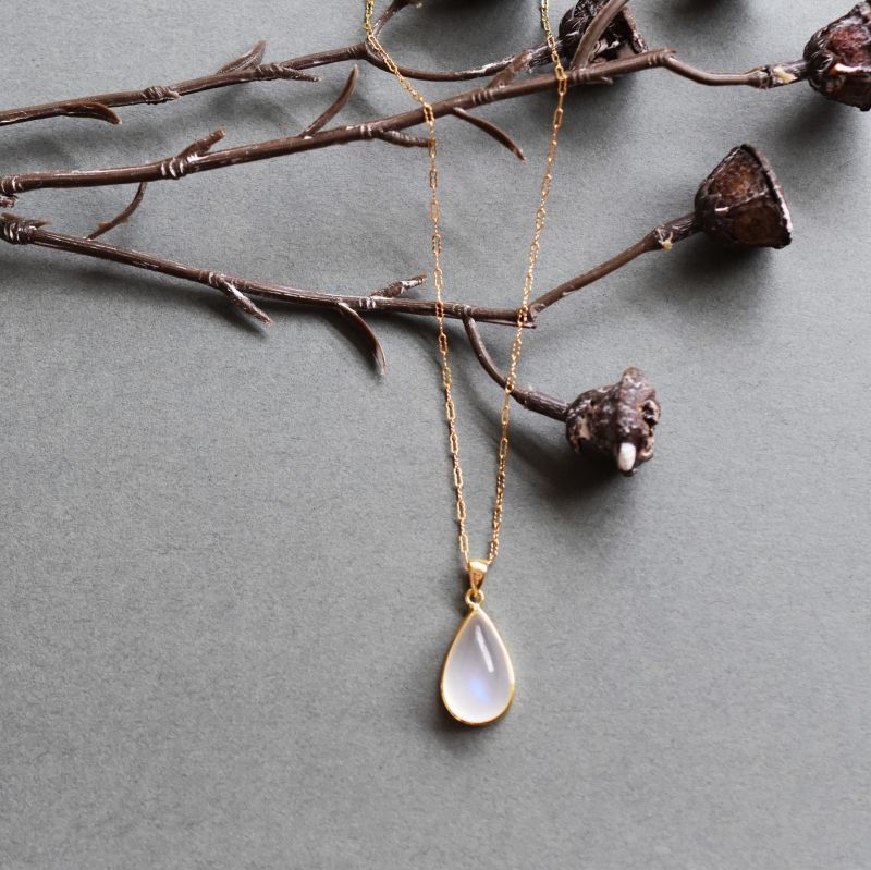 【1点もの・ティアB】AAA ロイヤルブルームーンストーン(ペリステライト) 約50センチ14KGFネックレス [N2423]