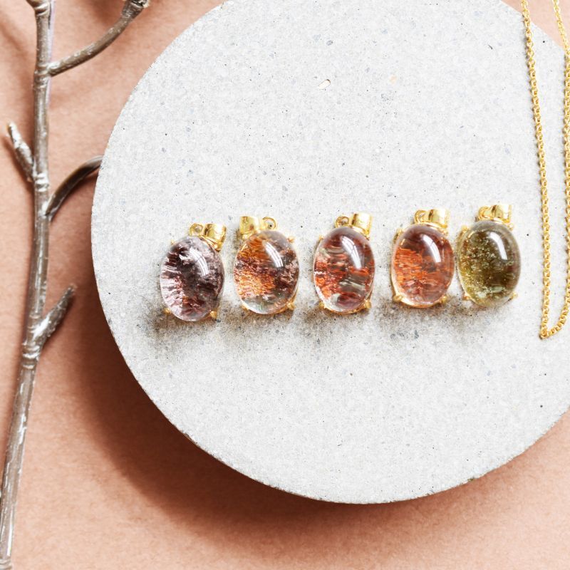 ガーデンクォーツ カボション 約14×10mm(silver925フレーム・18Kメッキ)