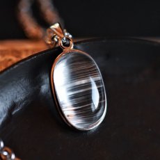 【1点もの・D】超希少! マダガスカル産 キャッツアイホワイトトパーズ ペンダント サージカルステンレス約50cmネックレス [N2456]