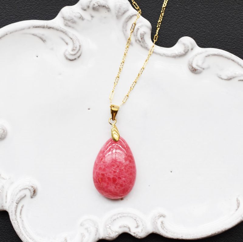 【1点もの・B】大粒 ブラジル産ロードナイト(薔薇石) フリーフォーム 14KGFデザイン50cmネックレス