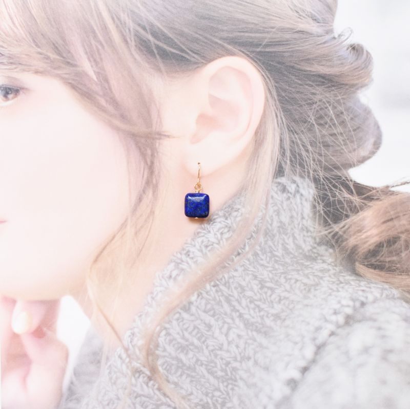 【限定・イヤリング変更可】夜空の窓 ラピスラズリ ぽってりスクエア 316Lサージカルステンレスフックピアス