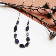 【1点もの】アイオライトフラットタンブル ブラックゴールドチェーン約86+5cm [N2511]