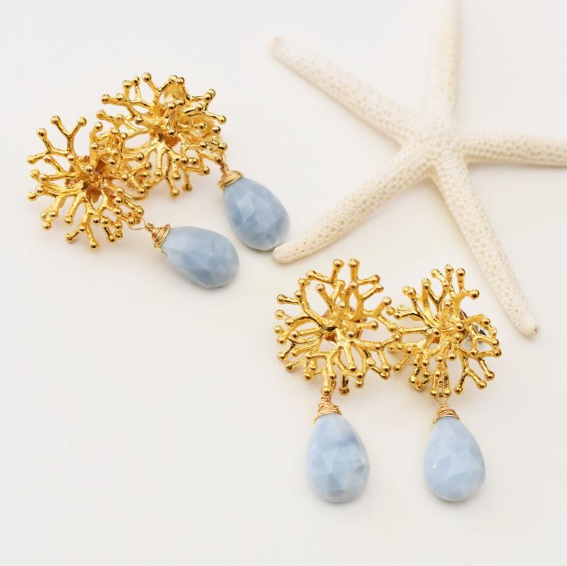 【1点もの・SELECT】大粒ブルーオパール 珊瑚チャーム チタンピアス&イヤリング
