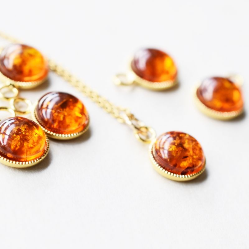 【人気!限定再入荷!】美しい紅茶カラー アンバー 天然琥珀 ミニカボション サージカルステンレスネックレス40cm