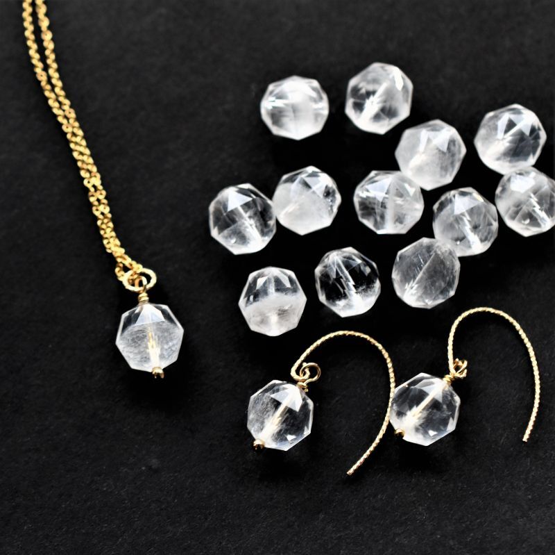 【イヤリング変更可】氷結 ホワイトファントムクォーツ カットビーズ サージカルステンレスピアス