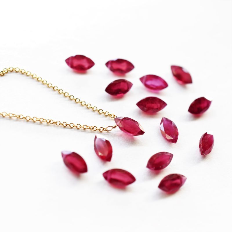 【限定数のみ】リップ型 宝石用ルース マーキス ルビー 約40cmサージカルステンレスネックレス