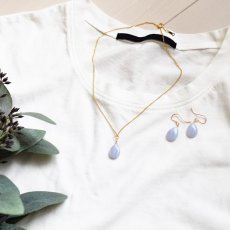 ブルーレースアゲートの一粒ペアシェイプピアスの入荷です