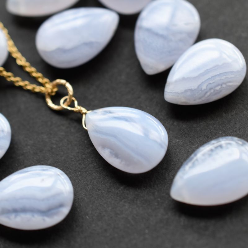 ブルーレースアゲートの一粒ペアシェイプネックレスの入荷です