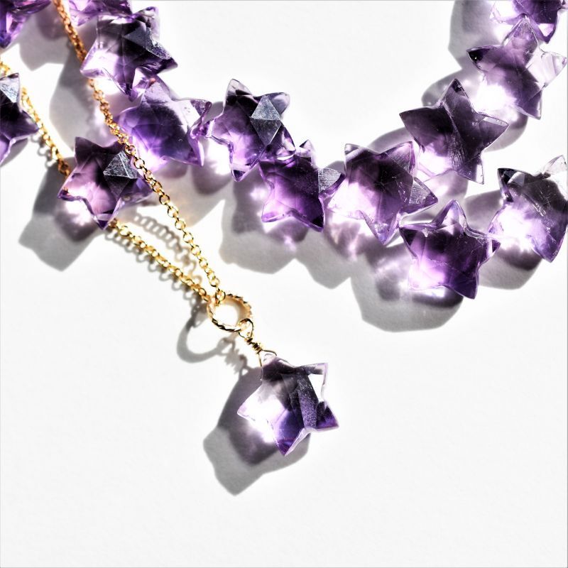 半額SALE【訳あり・在庫僅少】星降る アメジスト 大粒スターカット 約40cm サージカルステンレスネックレス