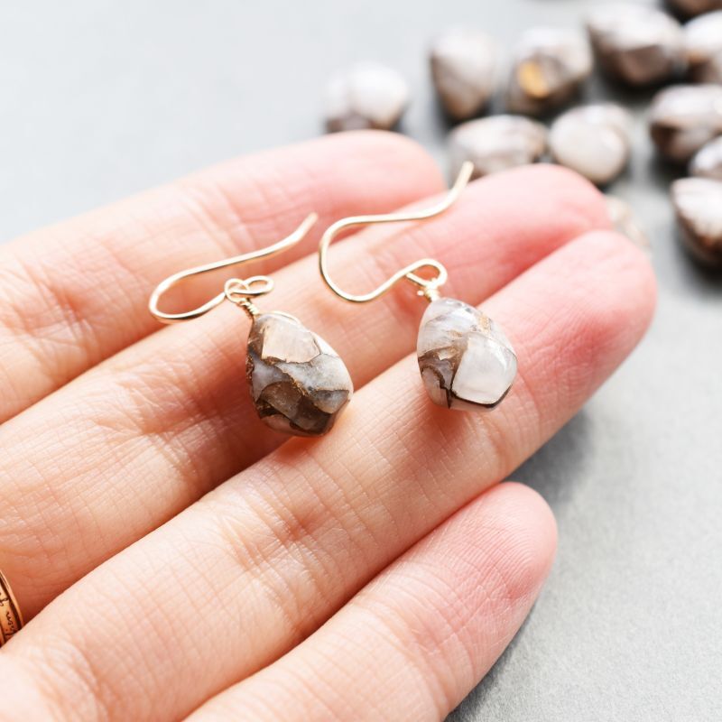 【限定数のみ・イヤリング変更可】ホワイトカルサイト コッパー サージカルステンレスフックピアス