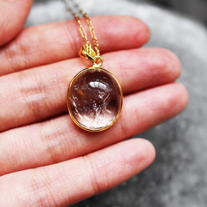 【1点もの・D】希少石!水入り水晶(クリスタル) ペンダントネックレス 14KGFネックレス50cm