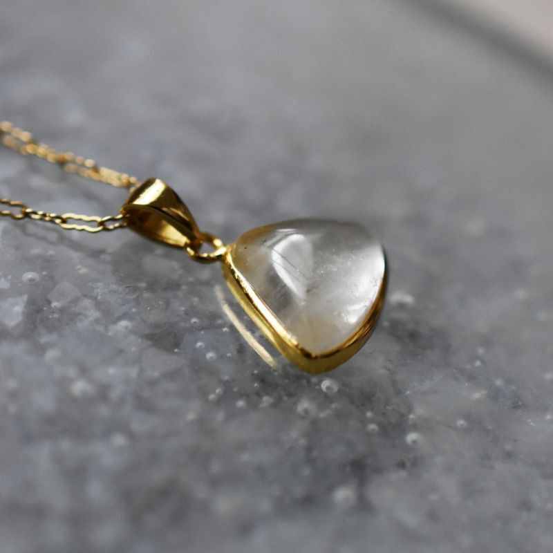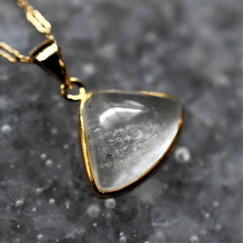 【1点もの・サンカクC】希少! リビアンデザートグラス ペンダントネックレス 14KGFネックレス50cm