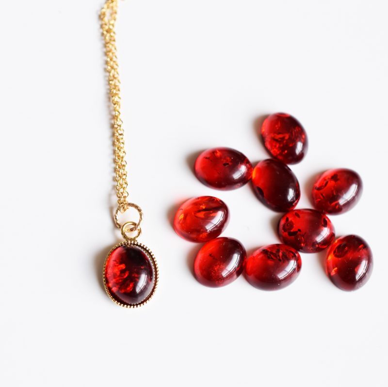 【限定数のみ】クラック入り リトアニア レッドアンバー カボション サージカルステンレス40cmネックレス