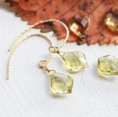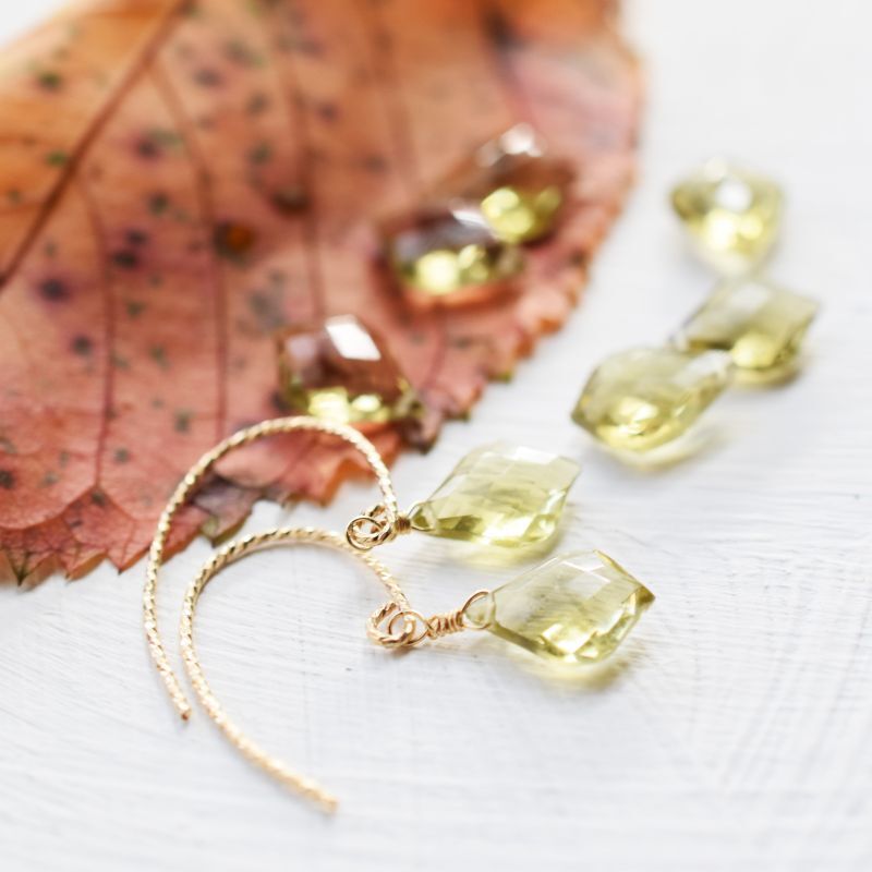 【限定数のみ】オリーブクォーツ シャンデリアペアシェイプ サージカルステンレスフックピアス