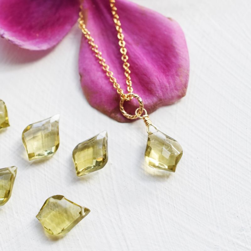 【限定数のみ】オリーブクォーツ シャンデリアペアシェイプ サージカルステンレスネックレス40cm