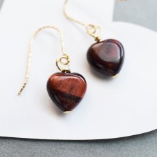 【限定数のみ・魔除け】レッドタイガーアイ ハート サージカルステンレスフックピアス [P0985]
