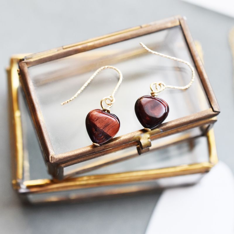 【限定数のみ・魔除け】レッドタイガーアイ ハート サージカルステンレスフックピアス