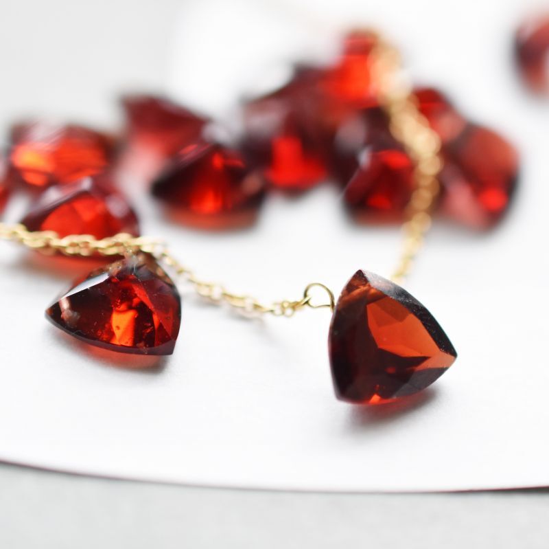 【限定数のみ】モザンビークガーネット トライアングルジェムカット サージカルステンレスネックレス約40cm