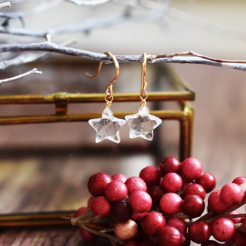 【限定数のみ】聖夜に煌めく星 クリスタル スター サージカルステンレスフックピアス