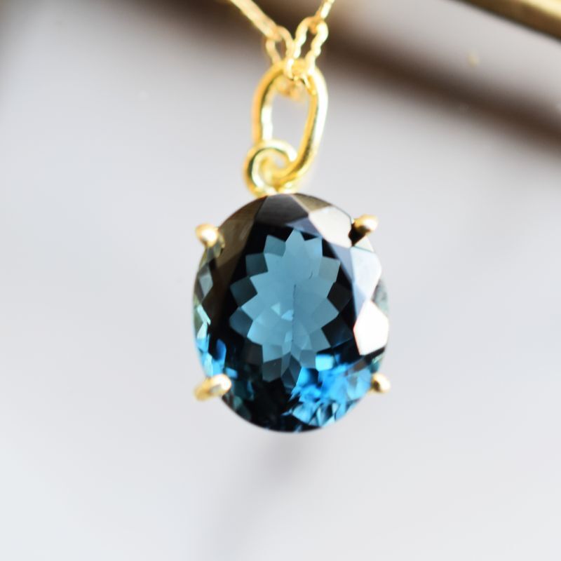 【1点もの・オーバルA】宝石用ルース ロンドンブルートパーズ 約50cm 14KGFネックレス