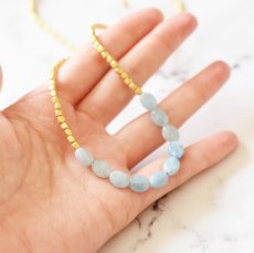 半額SALE【限定1】アクアマリン マットゴールドビーズ ミディアムネックレス [0000]