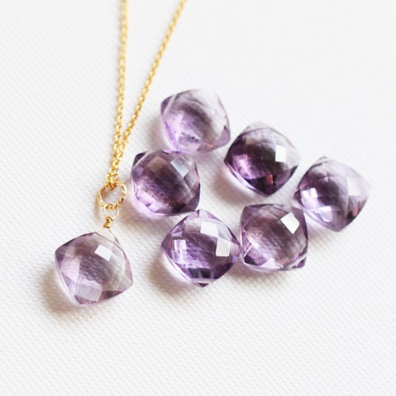 【限定7】ライトカラーアメジスト パフカット スクエア サージカルステンレス40cmネックレス