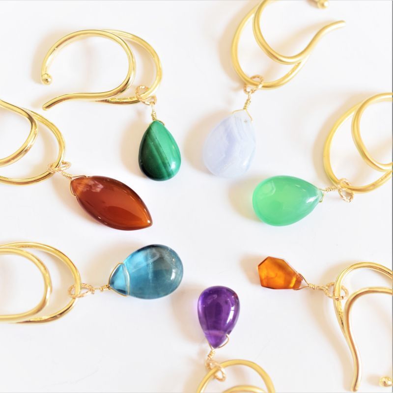 新金具追加【選べる・片耳】色とりどりの天然石 ストーン 一粒 イヤーカフ