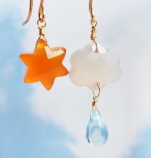 お天気の日を表した天然石のアシンメトリーピアス