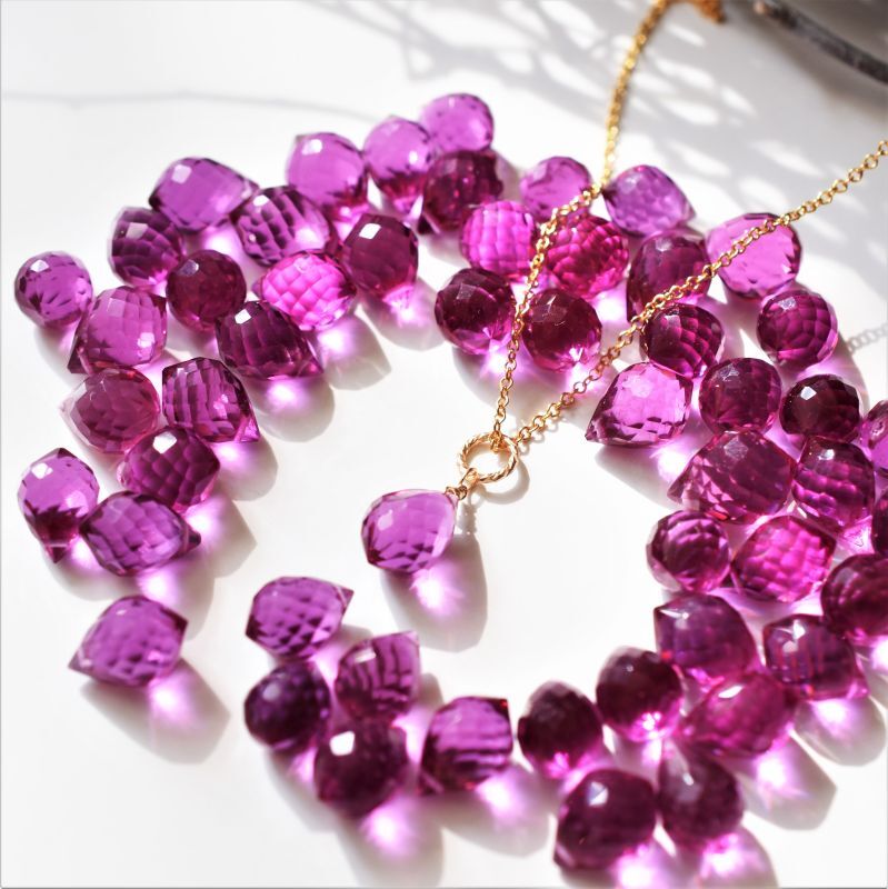 【限定数のみ】プラムピンク クォーツ シャンデリアドロップ 316Lサージカルステンレスチェーンネックレス40cm