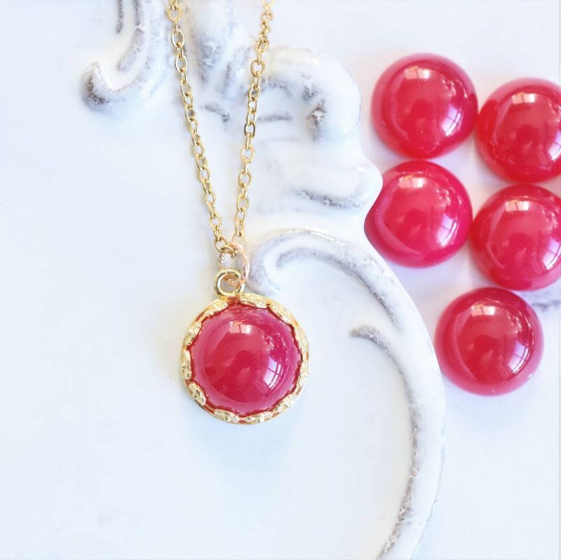 【限定数のみ】フューシャピンク カルセドニー フラワーカボション サージカルステンレス50cmネックレス